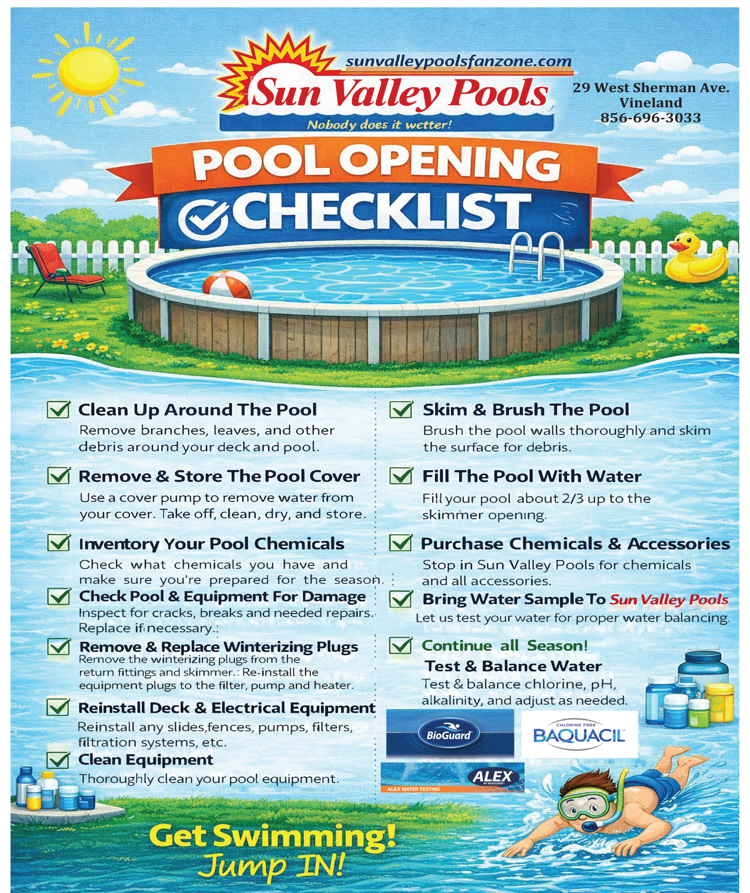 Sun Valley Pools and Fanzone has been servicing the tri-state area since 1980. We are a Bioguard® Platinum pool and spa chemical dealer and an expert authorized Baquacil® dealer. Come see how Sun Valley Pools and Fanzone can add some fun to your back yard!